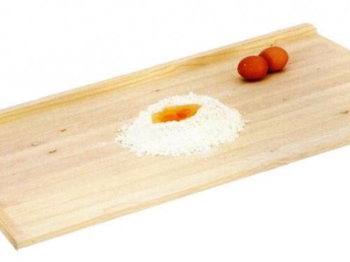 Spianapasta uso familiare,in multistrato compatto di betulla con listello anteriore batti farina e listellino inferiore spostabile di battuta sul piano di lavoro.